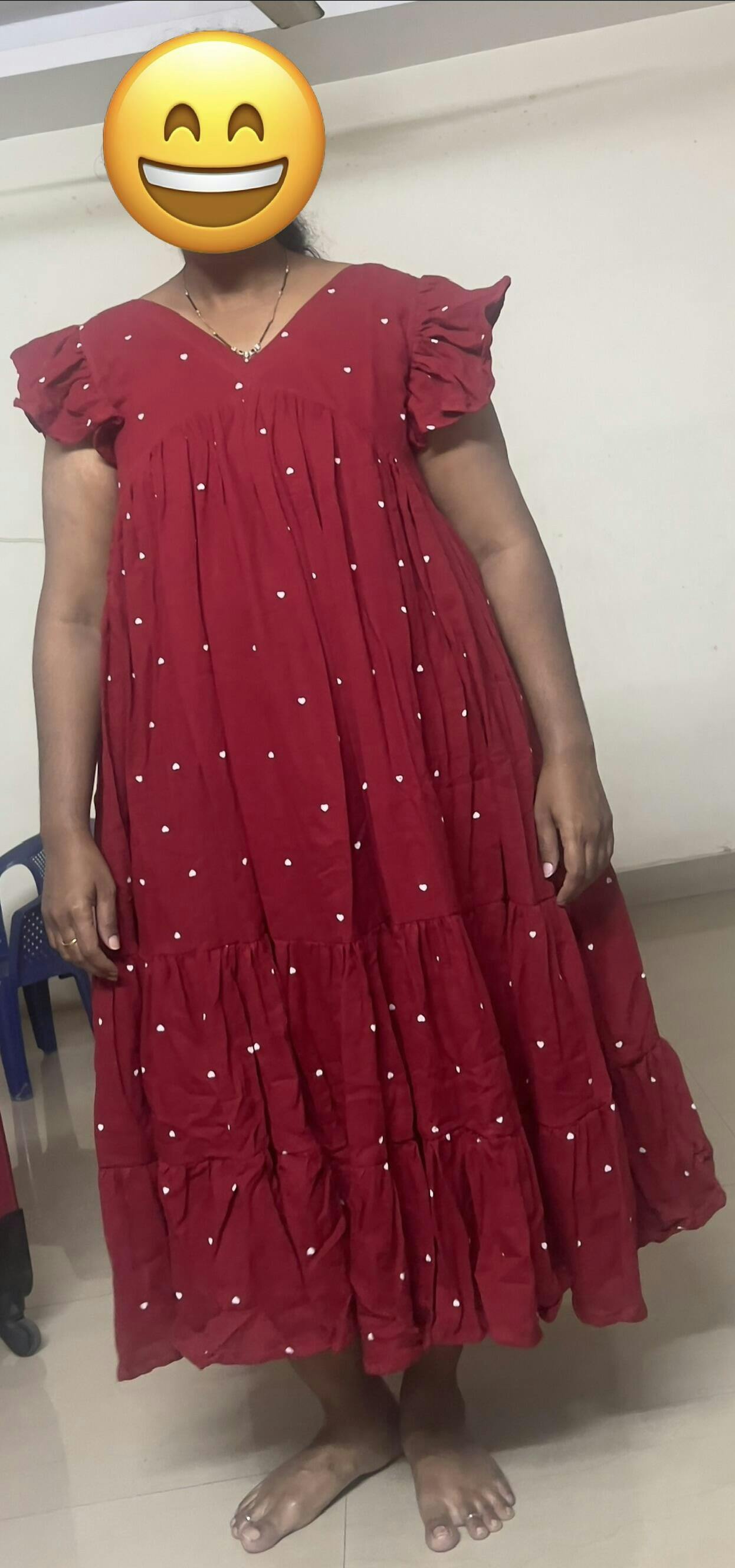 Angelisa - Red Muslin Cotton Heart Print Dress